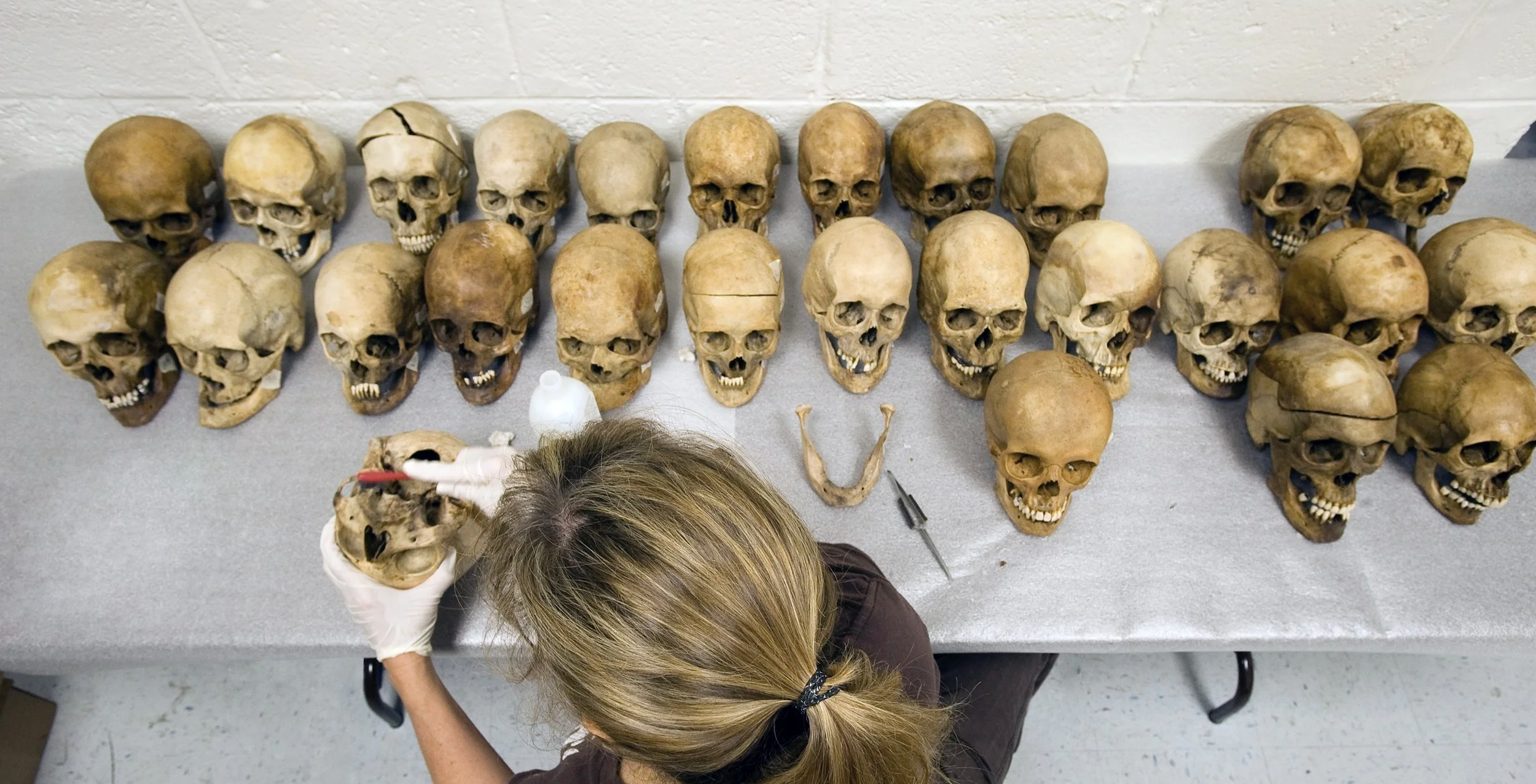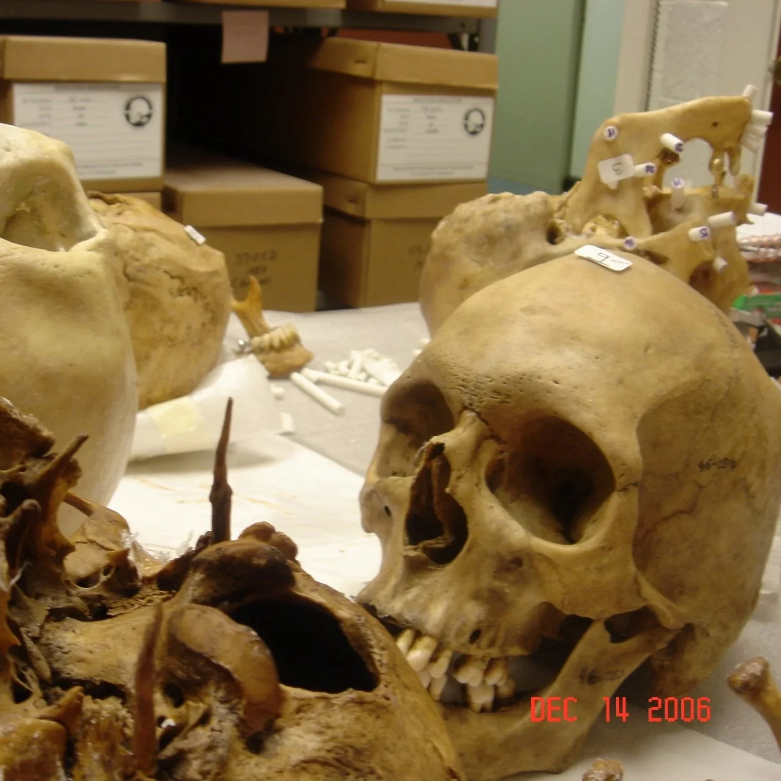 Cleaning skulls at the end of a end of a long day at the Body Farm.